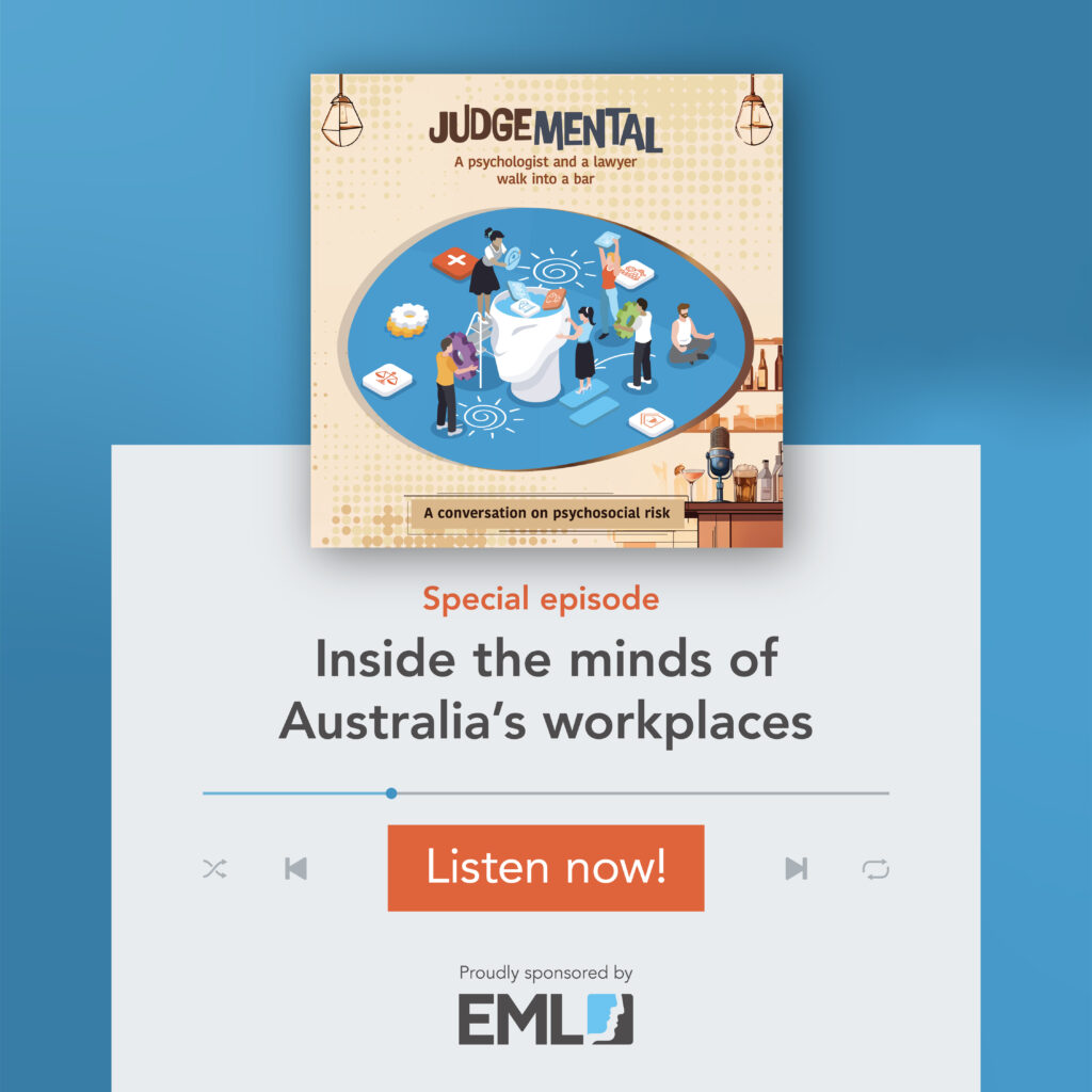 In this special episode of Judgemental: A psychologist and a lawyer walk into a bar, hosts Kate Connors and Greg Smith are joined by Keith Govias, Workplace Safety & Risk Principal at EML. Together, they unpack the findings and discuss what they mean for employers, workers and industry leaders.