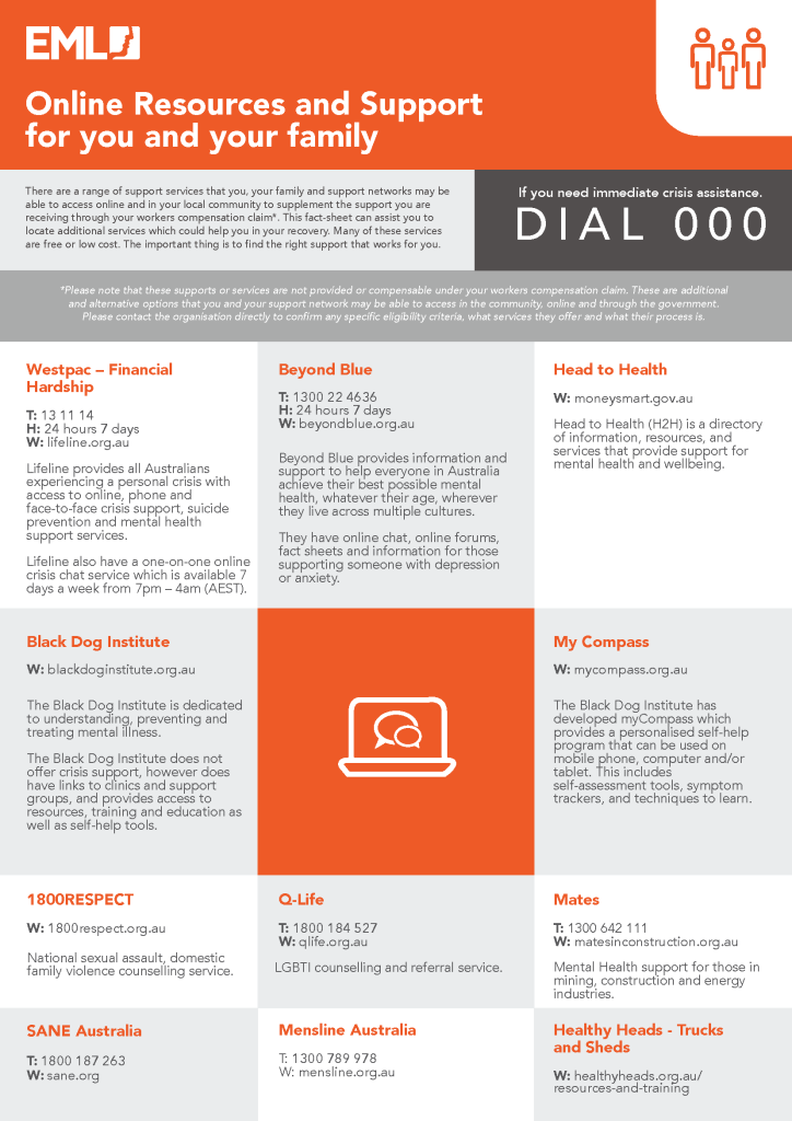 A range of services are available online and in your local community to supplement the support you are receiving through your workers compensation*.